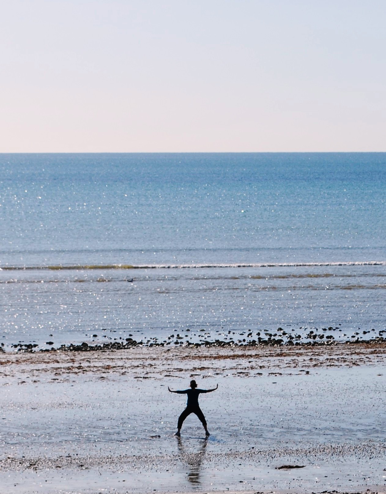 I took this photo of a woman doing Tai Chi on a beach inWest Sussex.I could do with some of her serenity right now. I am googly-eyed from spending all day staring at the computer screen studying for my hypnotherapy diploma.