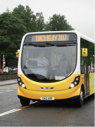 Then there was lots of music blaring and cheering as the Torch Relay bus went past: