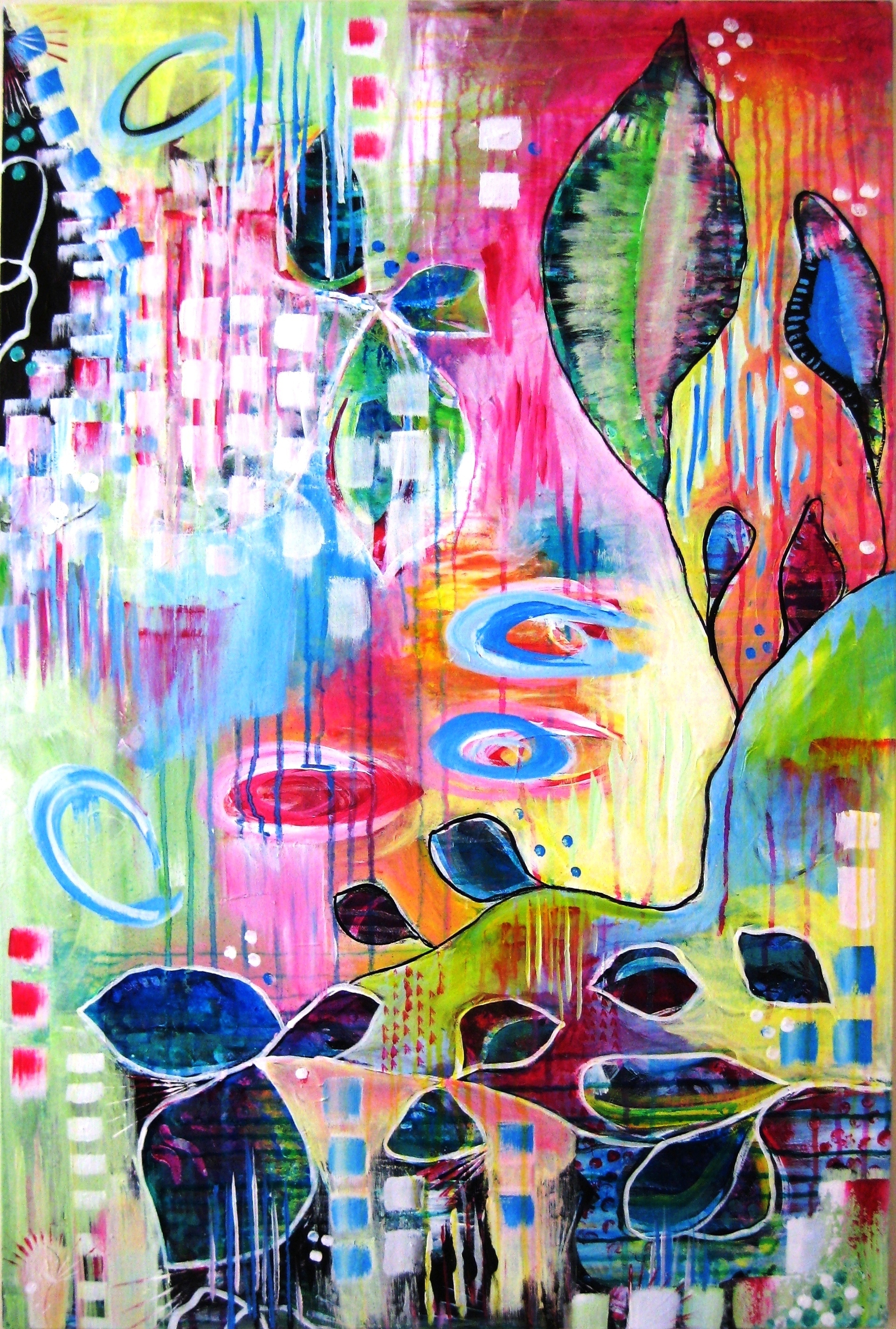 I promised I would post photos showing how one of my paintings emerged over the Bloom True Art course I did in June.